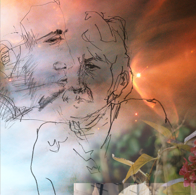 This image was developed over a long period. Several of the elements -- photos and drawings -- were done in 2000 and 2001, and were used in compositions then. I extracted and re-used some of these elements for a preliminary version of this piece in about 2008. Unsatisfied with that composition, it lay dormant until late 2010, when I conceived the idea of the background imagery, thus finally completing the composition.