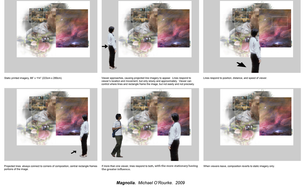 Digital print on canvas, mounted on board panels, interactive projected lines. 9' x 7' (274cm x 213cm) . (In progress)