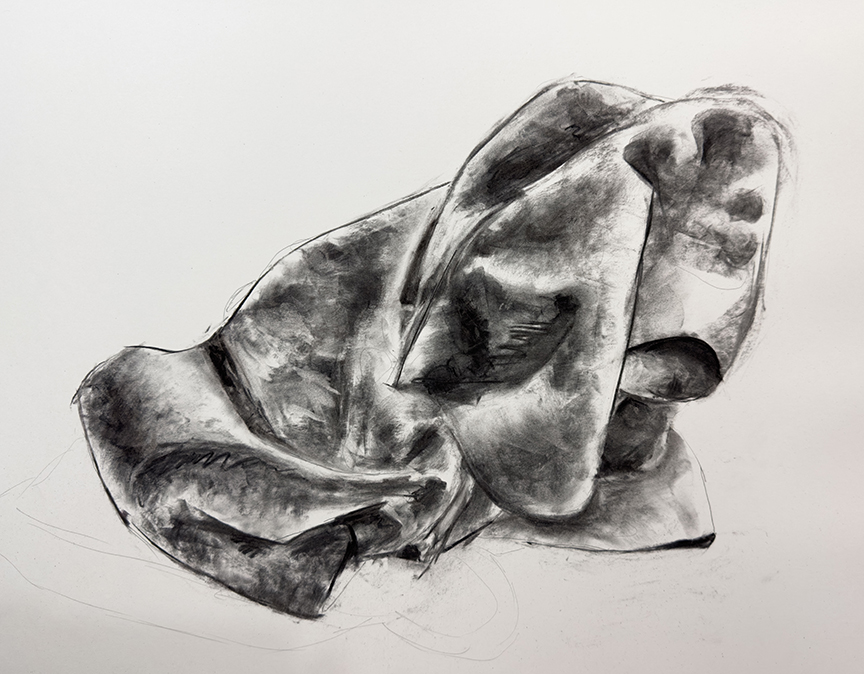 Studying and drawing cloth because of its complexity and (frequently) beauty. Studying the history of how others in earlier times and cultures have represented cloth, practicing, redoing, redrawing,....