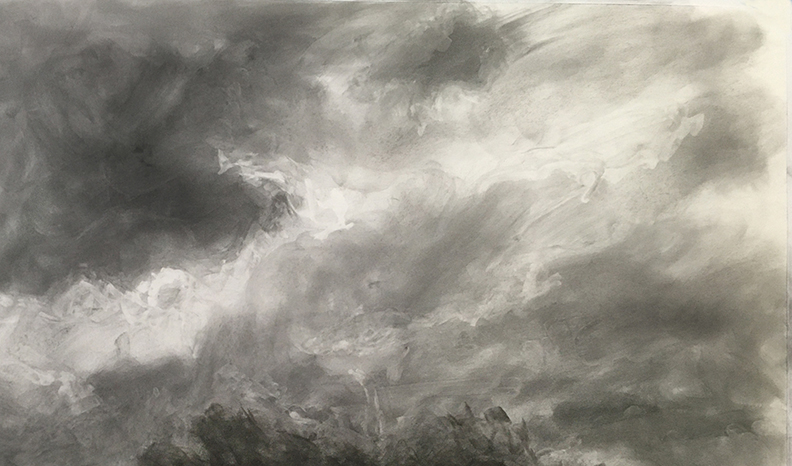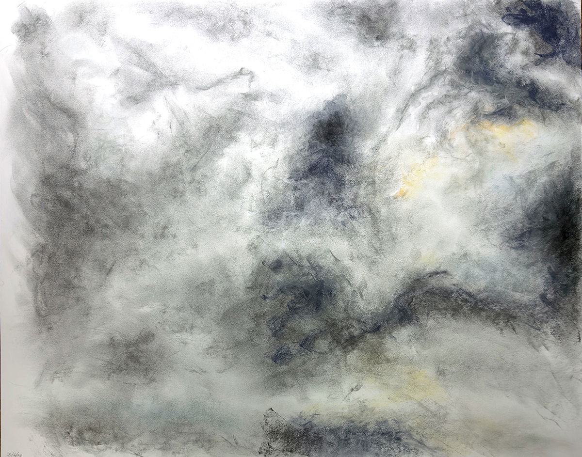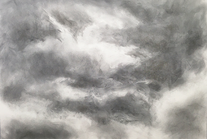 The drawings are of clouds without anything other than clouds included in the frame -- no horizon line, no trees, no earth, nothing to reference the clouds -- simply and solely clouds. The insubstantial, ever-changing, and ever-dissipating nature and beauty of these formless forms fascinates me.