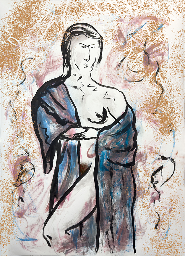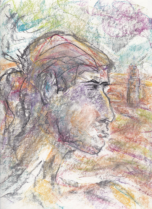 The two pencil drawings immediately below (9"x12") were done from life on 10/21/25. The color drawing below them was derived from them and done a few days later.