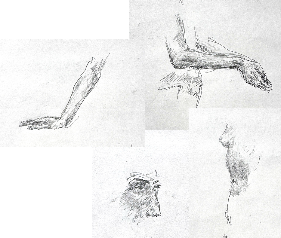 Drawings immediaatelty below are from life. Pencil & graphite on paper, sizes from 4" to 14" tall. 03/17/25