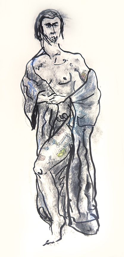 Ink, charcoal, pastel, pencil, 5" x 10"