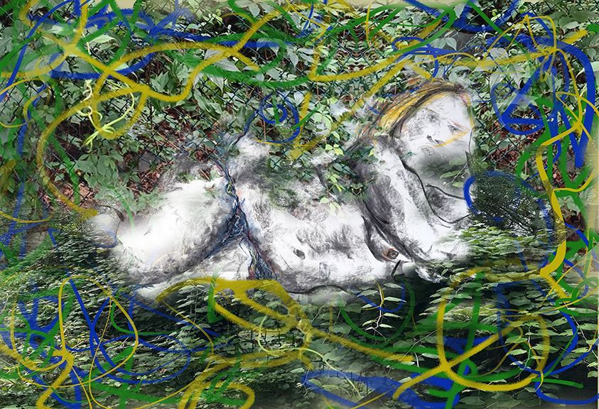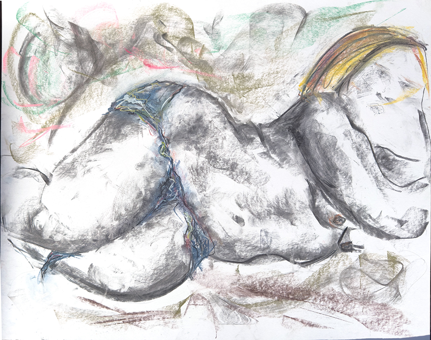 Charcoal, pastel, pencil, 24"x18", derived from life drawing of 11/14/25.