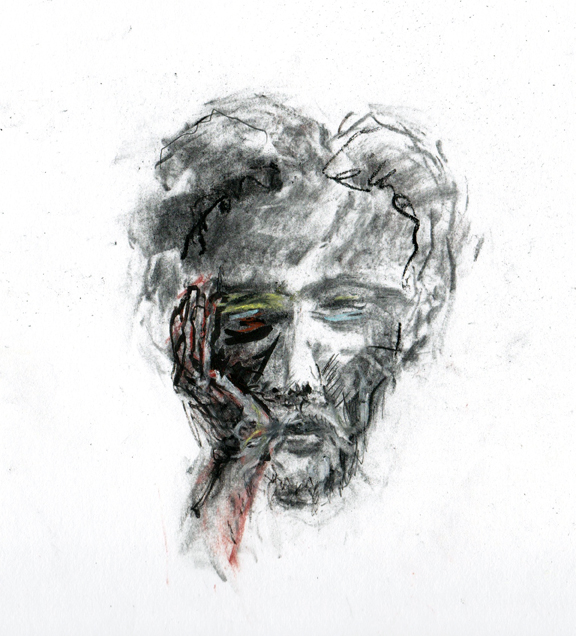Charcoal, ink, pencil, Conte on paper. 5" x 5"