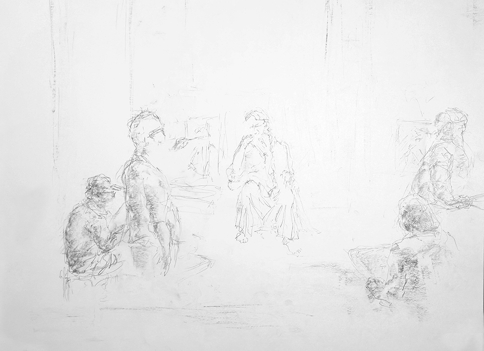 The Session. Pencil & graphite, 24"x18", 08/27/25