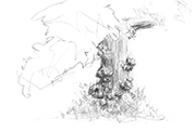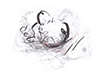 These drawings are just a few selected from the many in my sketchbooks. Most are abstractions; some are representational. A few were drawn specifically for use in a larger composition. A number of others, drawn initially just for their own sake, were later scanned and incorporated into larger compositions.