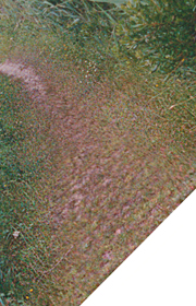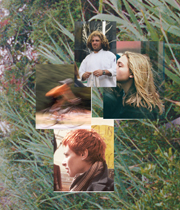 Dense vegetation growing in coastal sand dunes. A path leads to the beach. Superimposed, an array of photographs of people. Through and over the image passes a sweeping hand-drawn curve.