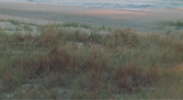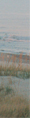 Looking across the sand dunes and across a stretch of ocean, in the distance a city, gleaming in the evening sun.