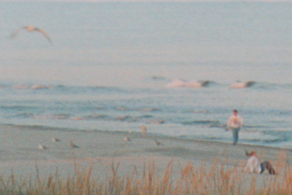 Twilight, the ocean's edge, sharing the beach with gulls.