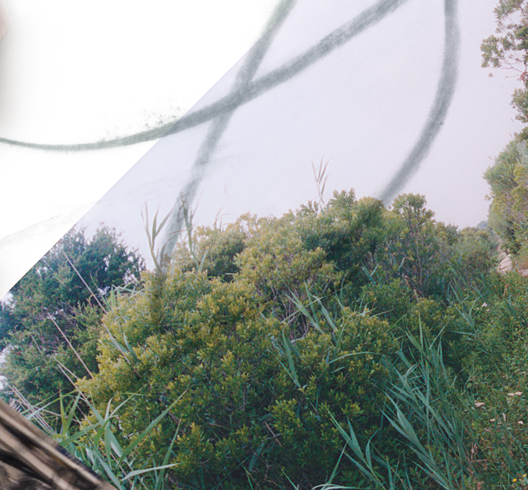 Dense vegetation growing in coastal sand dunes. A path leads to the beach. Superimposed, an array of photographs of people. Through and over the image passes a sweeping hand-drawn curve.
