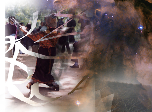 A woman dancing, merging with an image of the Eagle Nebula, as captured by the Hubble Space Telescope. The photograph of the woman was shot in a park in China.