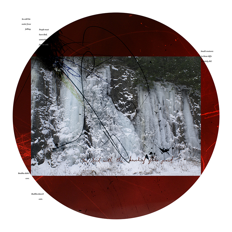 Print on paper with hand-written text in ink and paint. 24"x24". 2018