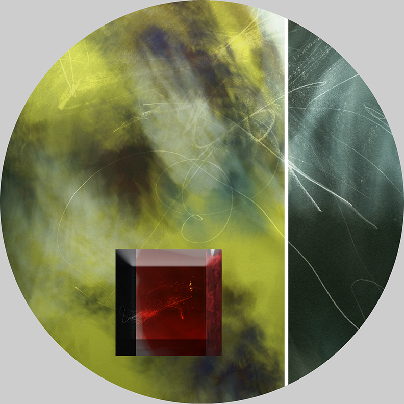 This image developed over a long time out of two other compositions, each of which I'd finished a year earlier and incorporated several scanned sketchbook drawings. Originally the new composition was rectangular. It was only on changing it to circular that the composition came together and felt complete.