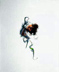 Each composition consists of a central, massy area surrounded by a skein of more ephemeral lines and marks. On one level, the imagery is suggestive of embryos and yolk sacks, associations which are complemented by the minuscule figures within the central area, entangled in the act of copulation. At the same time, the skein of surrounding lines creates a sense of space and scale. The lines and the space dissolve into the surrounding white space of the paper, making it impossible to fix where the "image" ends and the "non-image" begins, where the "object" ends and the "space" begins, or, in keeping with the growth/birth/possibility motif of the series, where the "I" ends and the "non-I" begins.