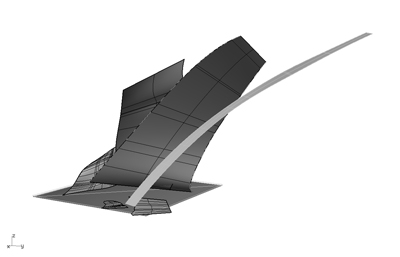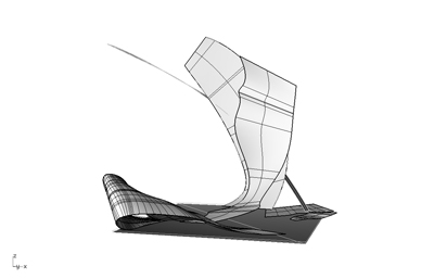 | A large cup-shaped form, with a thin long blade-like form. The surfaces are covered sometimes with blank white, sometimes with photographic imagery, sometimes with hand-drawn imagery. |
