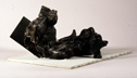 The maquettes, or scales studies, for each piece are made of plaster and aluminum, both stained to suggest bronze. A small bronze figurine is added to convey scale.