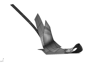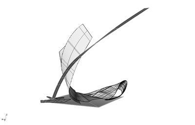 | A large cup-shaped form, with a thin long blade-like form. The surfaces are covered sometimes with blank white, sometimes with photographic imagery, sometimes with hand-drawn imagery. |