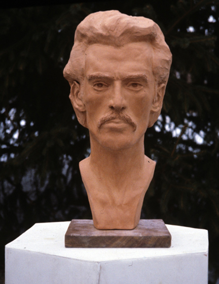 This self-portrait, done was I was in my mid-twenties, was the first portrait from life I attempted. It was modeled in clay and fired to produce the terra-cotta final. Beyond the technical and visual challenges, an unexpected psychological challenge presented itself, as I soon realized it must in all portraiture - the necessity of being bluntly honest in your view of the subject. With self-portraiture, this honesty is all the more difficult. In my self-portrait, I found it extremely difficult to admit to myself, as I looked in the mirrors, that my face was really as thin as it was. I wanted to see myself as more robust, and therefore more handsome, than I actually was. |