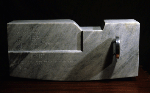 On a flat face of the marble, I carved some machine-language computer code. The code was a short function for creating a graphic.