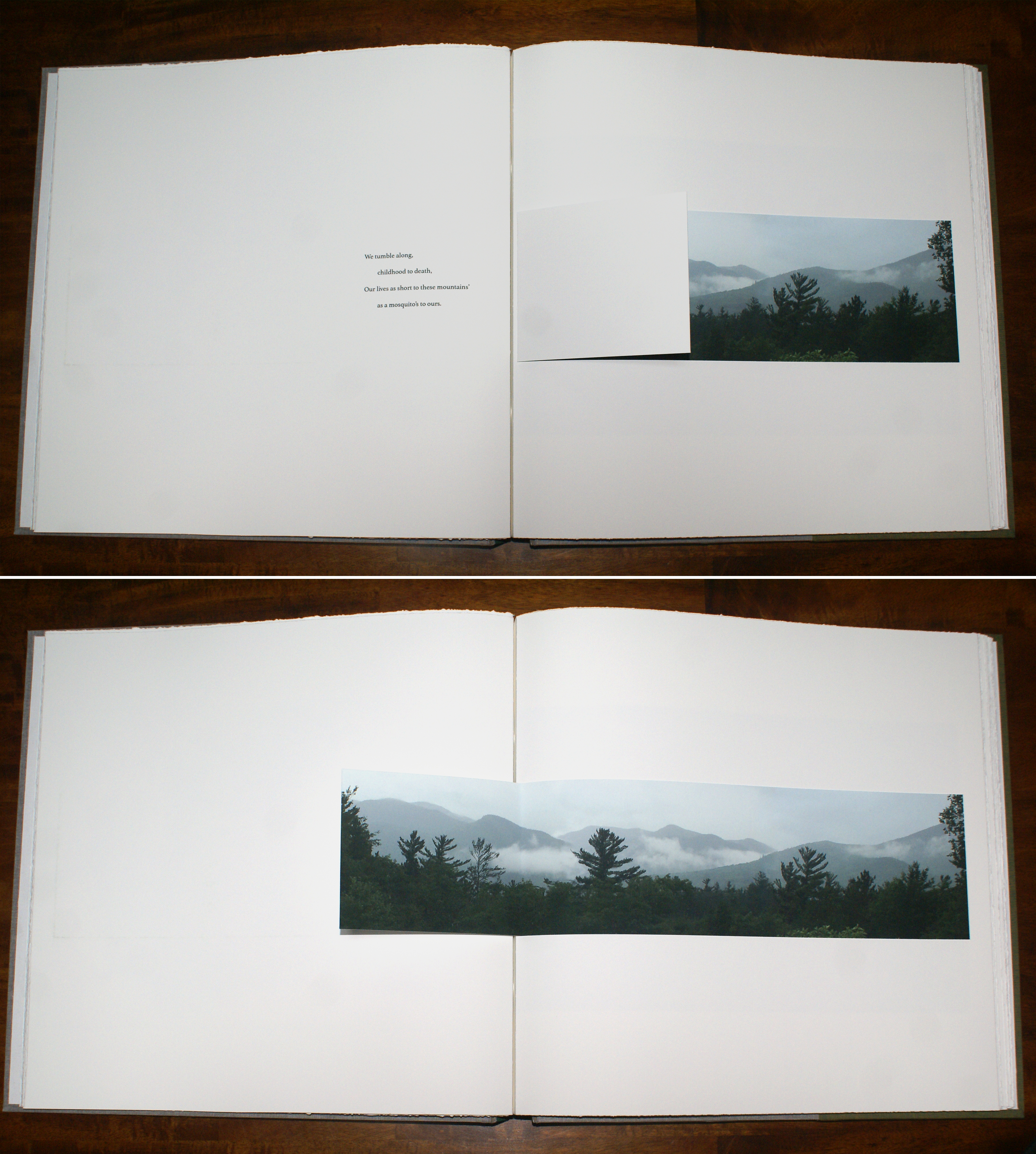 Below are several sample spreads of the book. The poetry is reprinted to the right for legibility.