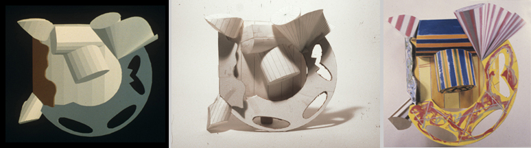 Stella had previously done a series of relief paintings involving these geometric forms produced as flat cut-outs overlaid on each other. The task here was to create similar compositions, but now using fully three-dimensional forms. Because of the complexity of fabricating these forms and their intersections, Stella sought us out to see if we could do it digitally. With the technical assistance of the computer scientists at NYIT, I digitally modeled these sculptures and produced construction data to allow Stella to fabricate them.