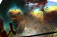 Interactive multimedia mural installation: printed tiles, real-time video, pre-recorded video, pre-recorded sound. 7' x 45.5' (2.1m x 13.8m) |