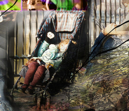 that happened at this site a few weeks previously. Her mother, sitting next to her on the bench, reads, and