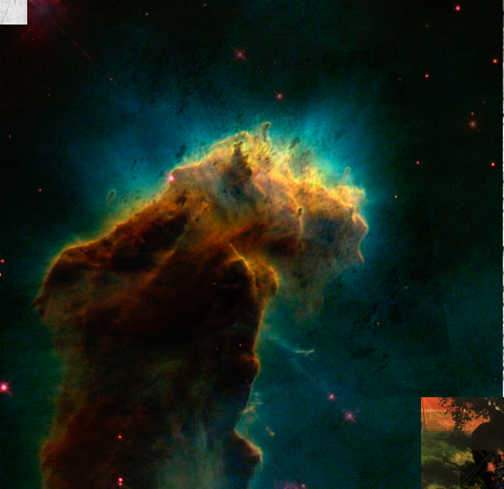 A nebula in far outer space, as photographed by the Hubble Space Telescope. The beauty of the universe, our place in it, our smallness, our astonishing wonderfulness.