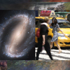 Each composition in this series combines photographs from nature, from New York City, and from the Hubble Space Telescope.