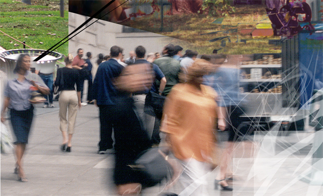 People rushing about their daily business.