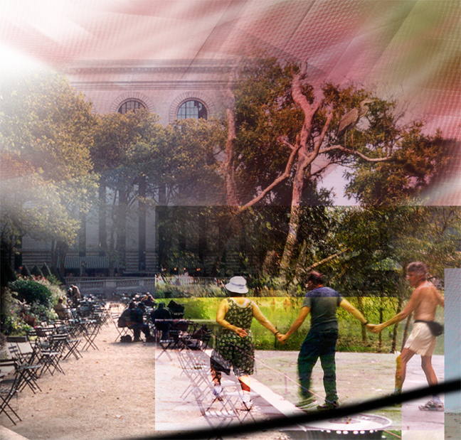 Old people dancing in a park.