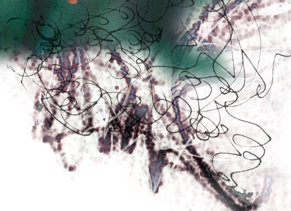 A swirl of lines, echoing the patterns -- of vegetation, nebulae, hair -- seen elsewhere in the composition.