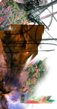 A swirling network of lines, colors, and images, intermeshed, concealing each other, completing each other. This composition is a variation on a section of the larger Buoy composition, and is included in this Seas series because of that.
