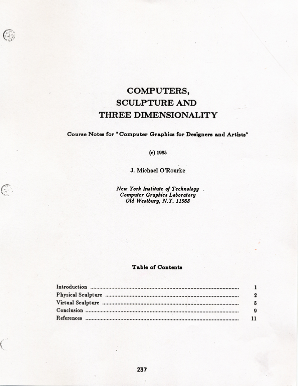 In this 1985 article, I introduced for the first time the use of the term virtual sculpture (cf. page 6). I also wrote of the philosophical implications of the concept of virtual reality (cf. page 10).